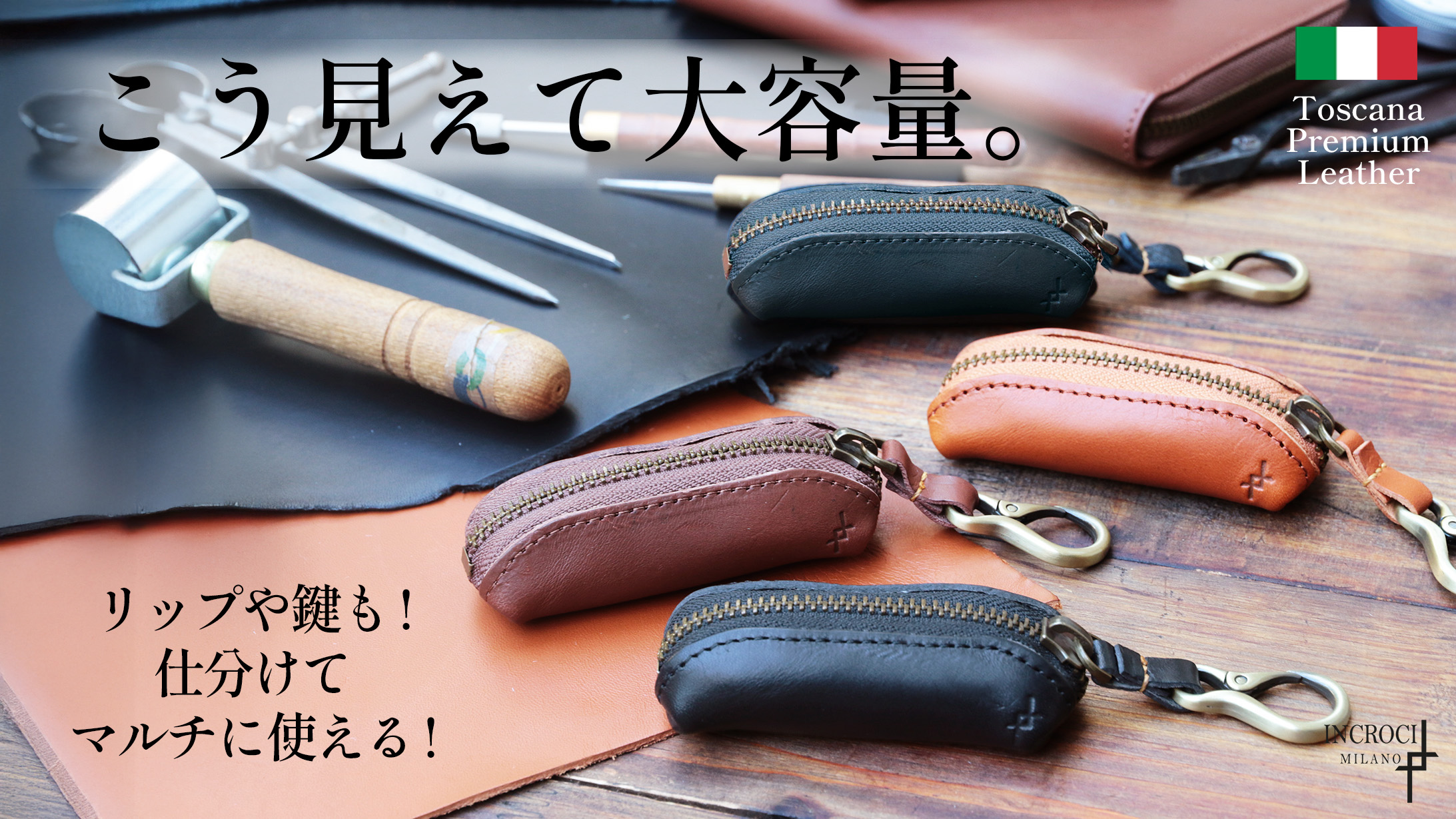 お財布と合わせてお持ちいただける、ベジタブルタンニンレザーの質感が光る、手に収まるサイズの、かわいらしいマルチケースです。