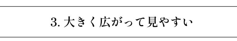 大きく開く=視認性の良さ、取り出しやすさ(操作性の良さ)につながります。