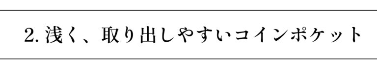 浅いコインポケットは、一目で見渡すことができ、視認性と取り出しやすさが共存する優れたデザインです。