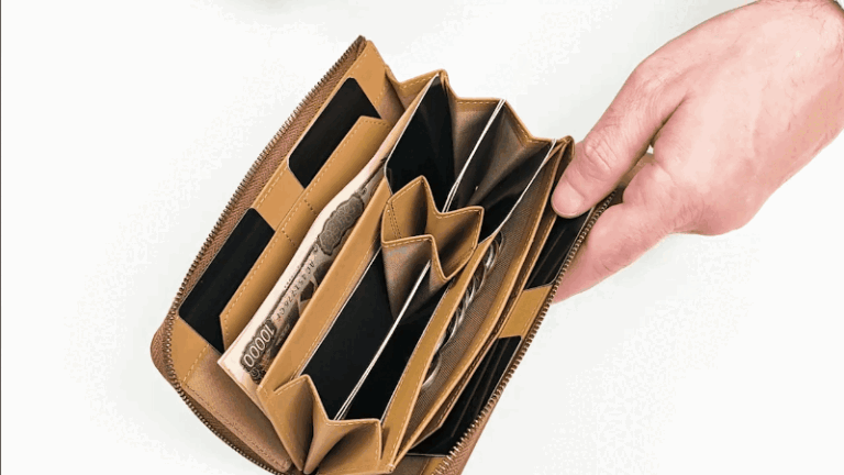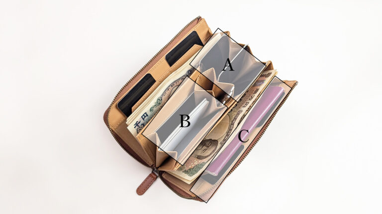 ・左のコンパーメントは経費用のお金、右のコンパーメントには個人用のお金。