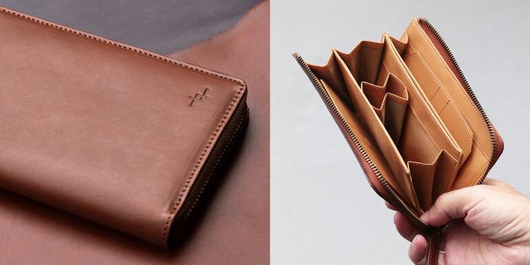 最近は、手間暇をなくすためだったり、軽量化のため、内革(裏地)を付けず【表革1枚だけ】のお財布もよく見かけます。