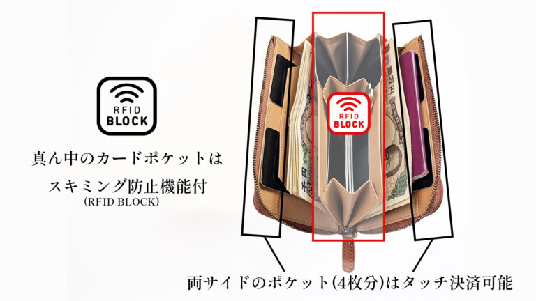 Genio GrandeⅡは、RFID BLOCK(スキミング防止)機能付き。