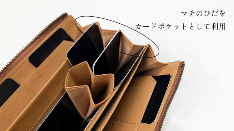 そして出来上がったマチは、薄くてもしっかりと形作られ、カードも無理なく入れることができるようになりました。
