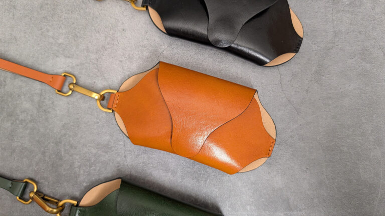 革の美しさ、パターンの曲線の美しさを最大に活かすため、ステッチは左右にのみ、最小限にとどめました。