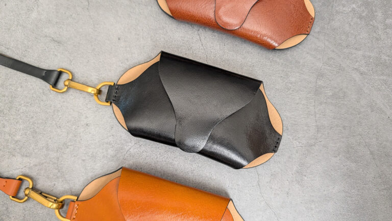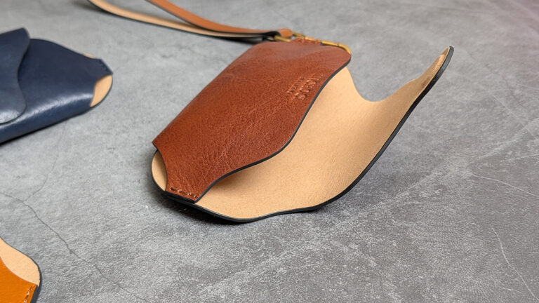 ベジタブルタンニンレザーを贅沢に一枚で裁断し、たたむことで成形する、美しいメガネケースです。